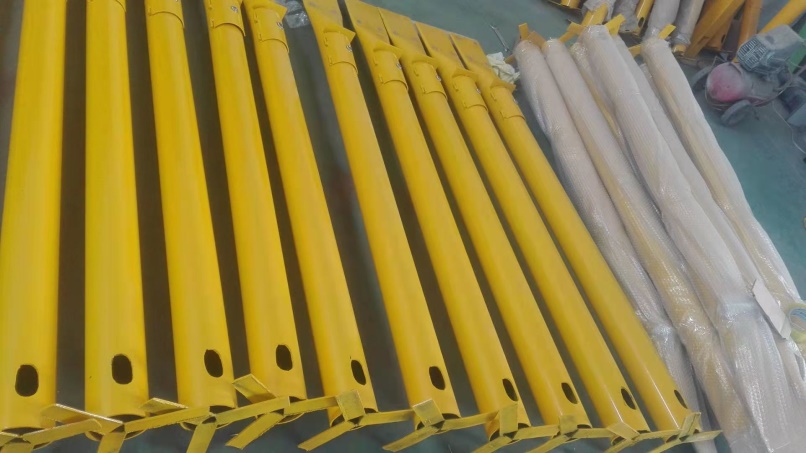 施工前檢查測試樁外觀尺寸及內(nèi)部結(jié)構(gòu)是否完好,接線是否牢固。若產(chǎn)品本身帶引線,檢查其引線長度、絕緣層是否符合圖紙要求。測試樁應(yīng)符合如下技術(shù)要求:1、測試樁由測試樁(含底部固定架)、測試接線板和銘牌幾部分組成。2、測試樁樁體應(yīng)采用規(guī)格為Φ108 的鋼管,長度為3m,測試樁與底部固定座采用焊接連接,底座在現(xiàn)場與水泥基墩連接。3、測試樁外壁(包括底板)應(yīng)涂敷防腐涂料,通過涂塑工藝處理,面漆為黃色。4、測試樁上應(yīng)有一個(gè)可以上鎖的門,并配有特殊的全線通用的專用鑰匙;測試門內(nèi)部轉(zhuǎn)軸及鎖扣檔片制造中應(yīng)有足夠的強(qiáng)度,以防人為破壞,測試樁門鎖采用在大氣環(huán)境下不生銹的材料制作。5、樁體內(nèi)對(duì)應(yīng)測試門處,應(yīng)裝有便于測試電纜連接的接線板,接線板應(yīng)與樁體絕緣,樁體底部應(yīng)有能使其穩(wěn)固的結(jié)構(gòu),樁體頂部應(yīng)留有安裝銘牌的空間和預(yù)留孔,便于銘牌壓接或鉚接。6、接線板應(yīng)符合下列要求:a.接線板上的接線端子(又稱接線柱)為 6柱型,接線板用絕緣板板制作。b. 接線端子適于連接截面為2.5-10mm2的電纜。7、測試樁銘牌:銘牌為白底黑字不銹鋼銘牌其尺寸大小 140mm×200mm 銘牌上標(biāo)注管道名稱、里程數(shù)、管理單位名稱、聯(lián)系電話、編號(hào)及測試樁類型等信息,文字采用電解刻字加工。測試樁固定采用集中預(yù)制水泥固定墩,再在現(xiàn)場安裝時(shí)用水泥溝縫,測試樁與水泥墩縫隙下部采用棉麻封堵。